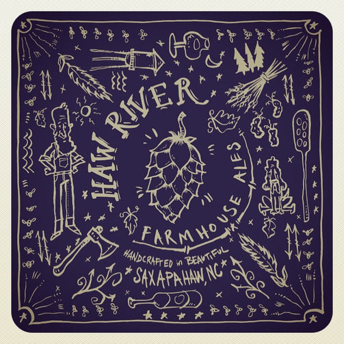Stay safe and stylish with a branded Haw River bandana, hand-illustrated by our homie Nathan Golub! Each measures 22" square, is available in either Gold or Navy and can cover both your mouth *and your nose* while you're walking through the grocery store, you crazy people.