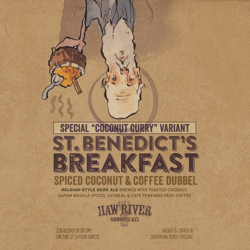 Brewed with oatmeal, organic roasted cocoa nibs and a special blend of Peruvian coffee beans from Joe Van Gogh Specialty Roasters, this special variant of our Trappist-style “Breakfast” Dubbel has been infused with toasted flaked coconut and a custom blend of warm Indian spices, for a unique take on our favorite coffee & oatmeal dubbel, with floral aromatics of roasted coffee, warm spiced curry and rich, creamy cocoa.
