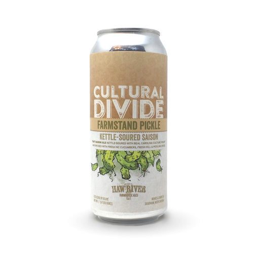 One of our customers' favorites from the Cultural Divide series of kettle-soured beers using fresh, live-culture yogurt bacteria from our friends at Carolina Culture Dairy, Cultural Divide: Farmstand Pickle is a lemony bright, tart saison that's brewed with fresh cucumbers and dill, and spiced gently along the way with sea salt, black peppercorn, allspice, mustard seed and Indian coriander!